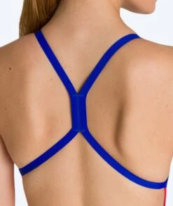 Badedrakten er designet i et enkelt lag med tynne stropper, åpen rygg og høyt bensnitt. Dette gjør badedrakten optimal for svømmetrening, stranden eller en tur i svømmebassenget.