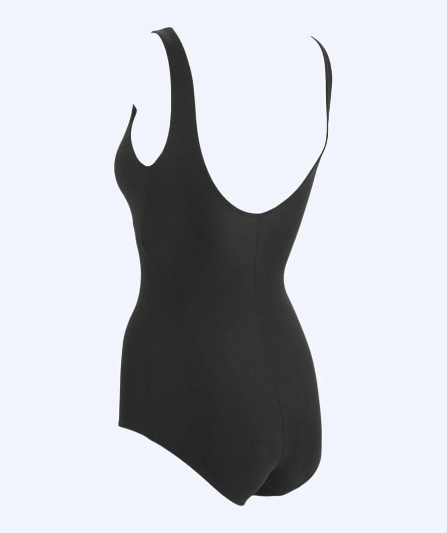 Badedrakten har et høyt bensnitt som gir god bevegelse i vannet.
