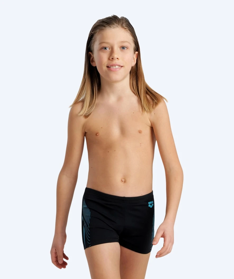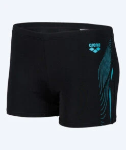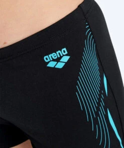 Badebuksene her er en kort modell produsert av Arena. De har et smalt strikk i midjen som kan justeres på innsiden via et knytebånd.