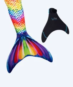 Denne havfruefinnen fra Fin Fun har et design som består av en kombinasjon av alle regnbuens farger – en kombinasjon som ser helt magisk ut. Fargenes samspill skaper en illusjon av at materialet ligner på ekte fiskeskjell.