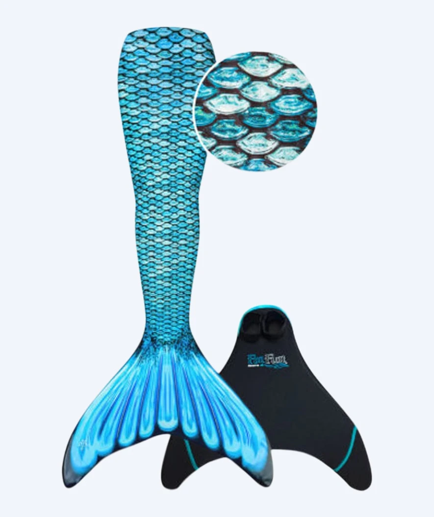 Denne havfruefinnen fra Fin Fun har et design som består av en kombinasjon av nyanser i blått – en kombinasjon som ser helt magisk ut. Fargenes samspill skaper en illusjon av at materialet ligner på ekte fiskeskjell.