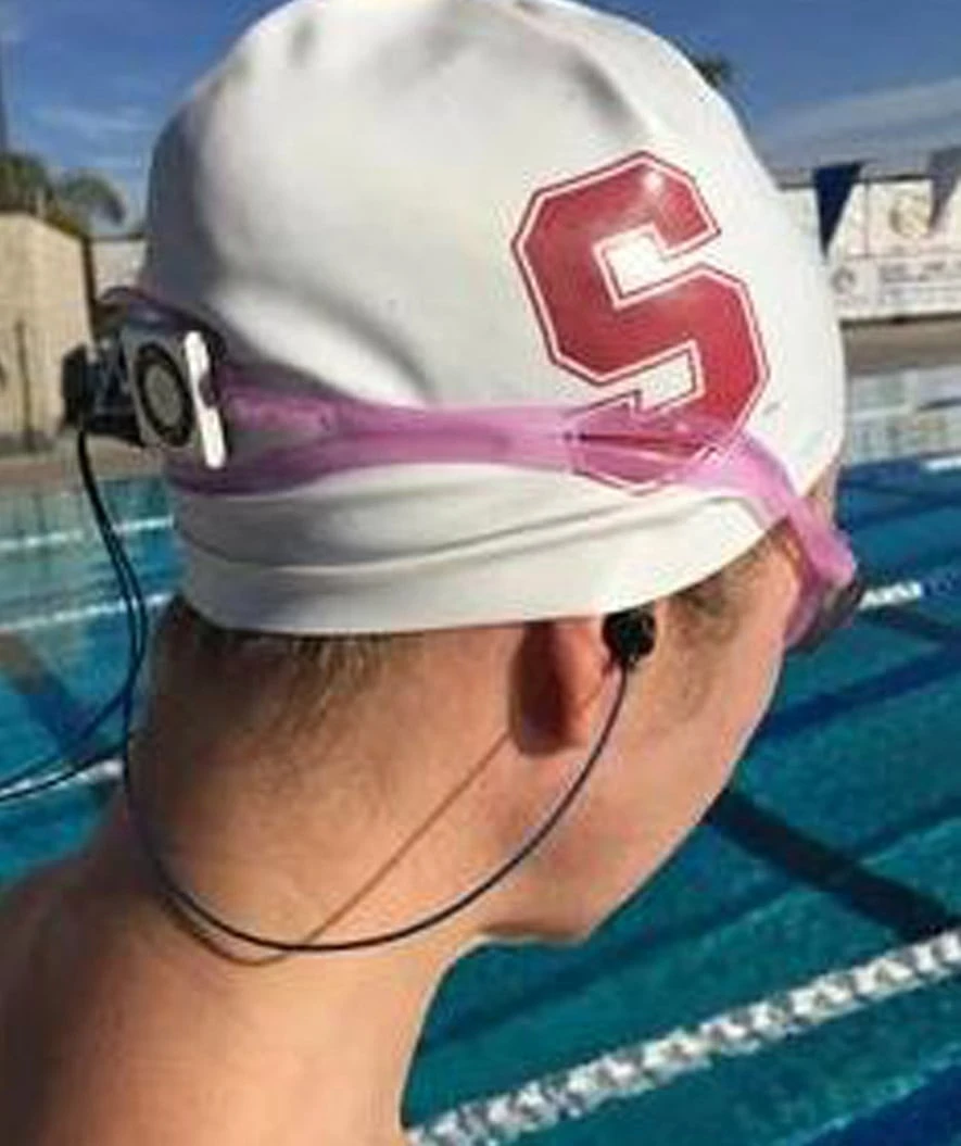 H2O Audio Surge S+ Vanntette svømme-hodetelefoner – kort ledning er til de, som gjerne vil høre på musikk mens de svømmer i vannet, men som ikke orker å ha lange ledninger som man kan sette seg fast i.