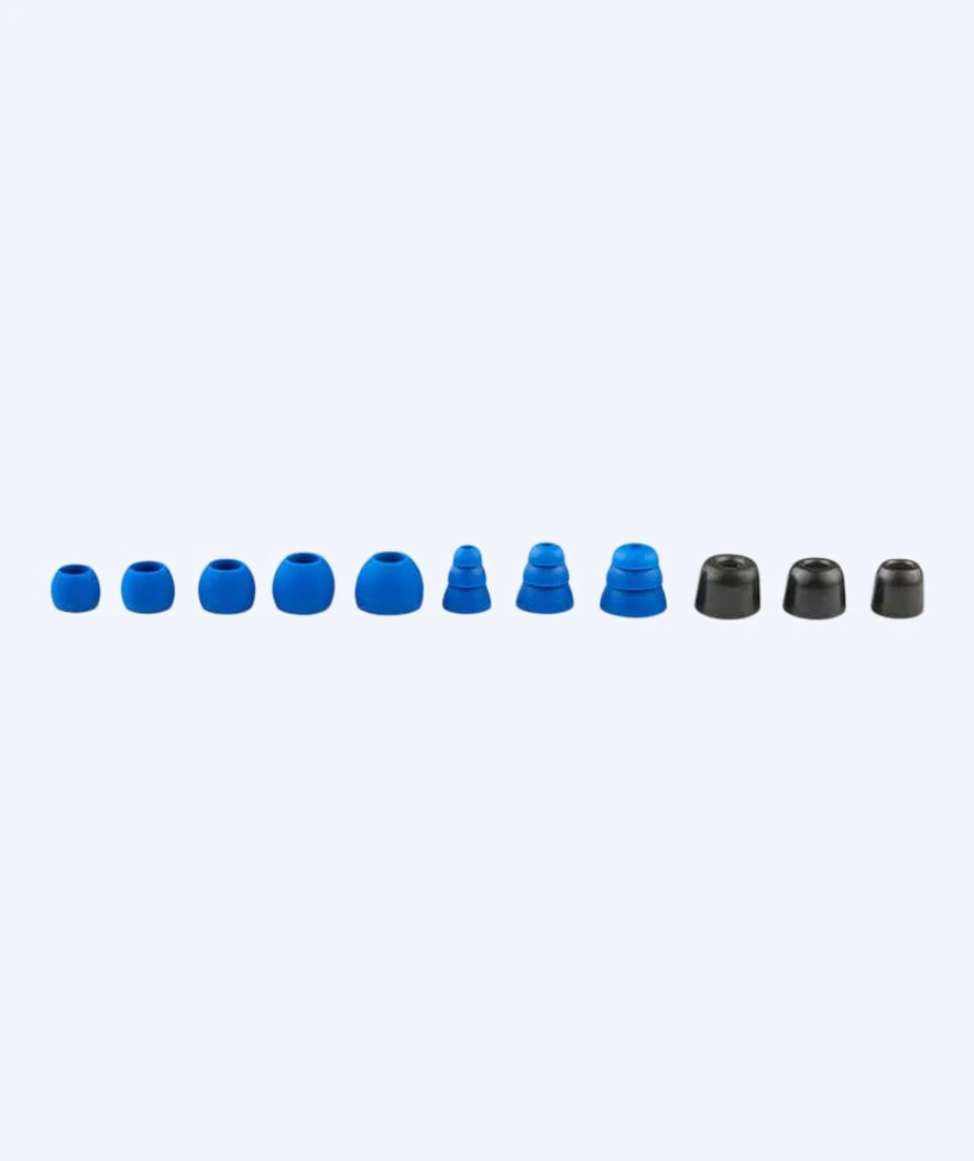 Designmessig kommer de i de karakteristiske blå og sorte fargene, som kjennetegner H2O’s produkter. De er utstyrt med en god ergonomisk bøyle, som sitter godt på øret, og det er mange gode earplugs å velge mellom. Sjekk de ut i H2O Audio Surge Replacement ørepropper. Bruk de som fungerer best i dine ører.