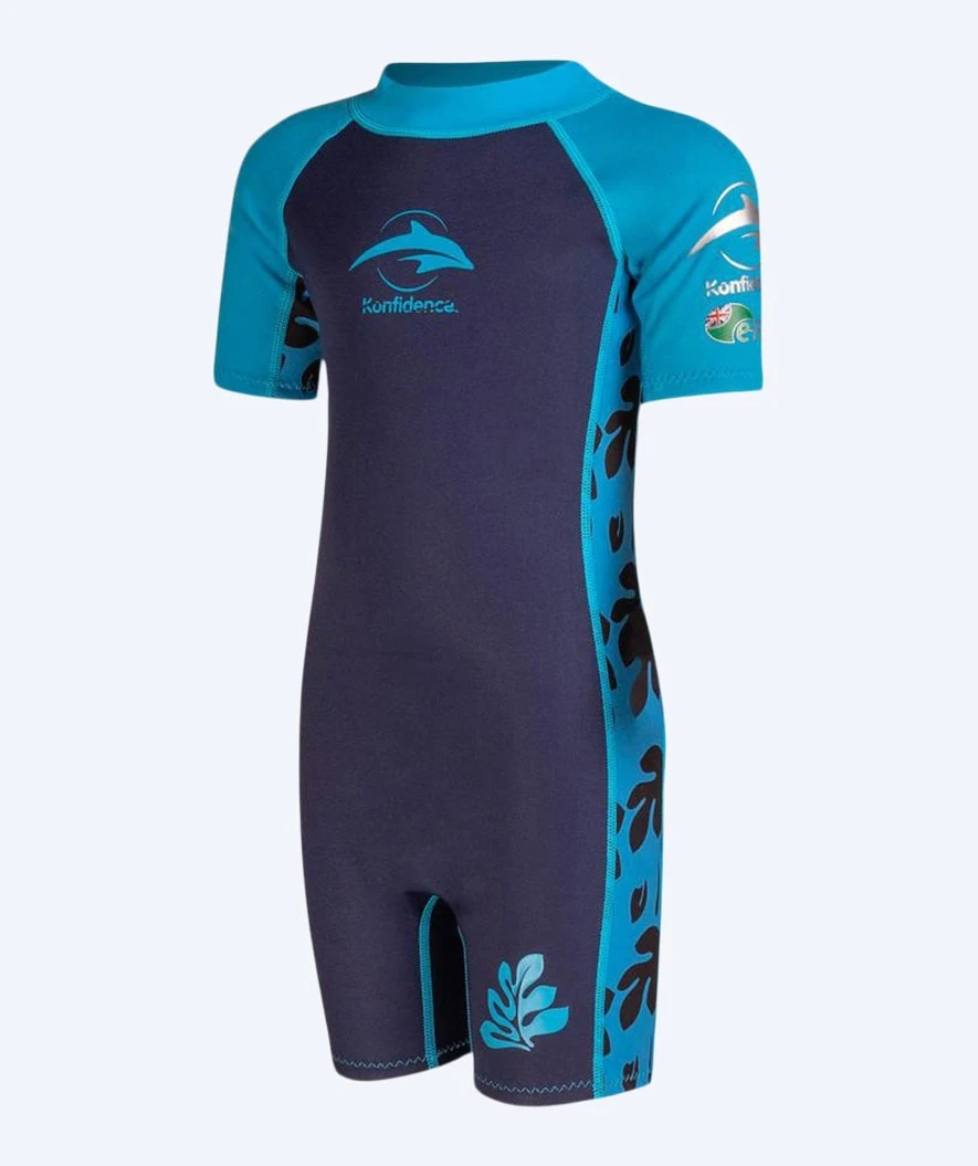Svømmedrakten er laget i mykt og behagelig neoprene, som er et fleksibelt materiale, som også beskytter mot 100 % av solens UV-stråler, samtidig som at det holder barnet varmt, både i og utenfor vannet.