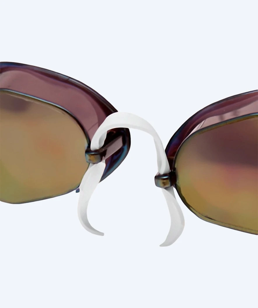 Nesebroen skiller seg ut sammenlignet med andre kjente svømmebriller, da den er laget av silikon. Måten du justerer den på er atypisk og gjøres ved å sno linsene frem til du har oppnådd den optimale passformen.