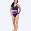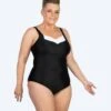 En badedrakt med en god passform – også til de litt større kvinnene. Innerdelen sitter tett, og ytterskjørtet er både pent dekkende og meget feminint.