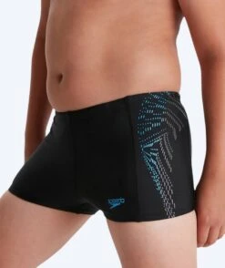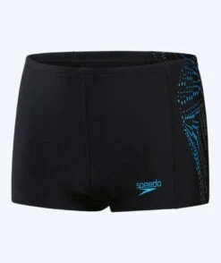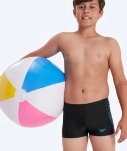 Disse badebuksene fra Speedo er designet i fargen sort med flotte lyseblå detaljer. De kan brukes av gutter mellom 6-16 år. De er laget til trening, men kan også brukes til neste tur i bassenget.