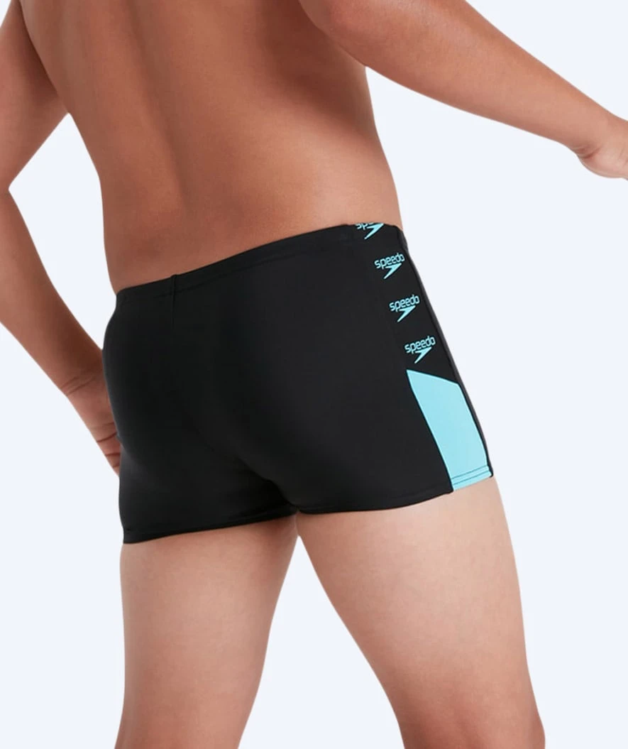 Disse badebuksene fra Speedo er laget i sort med et fint grått design på siden. Badedrakten er laget for gutter i alderen 6-16 år. Disse er best for nye svømmere, men kan også brukes til å trene erfarne svømmere.