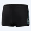 Disse badebuksene fra Speedo er laget i svart med et fint blått design på siden. Badedrakten er laget for gutter i alderen 6-16 år. Disse er best for nye svømmere, men kan også brukes til å trene erfarne svømmere.