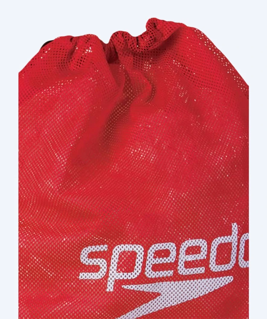 Svømmenettet er laget av et trådnett som sikrer ventilering og dermed tørkes utstyret ditt raskt. Selve designet er super enkelt i en rød farge med en hvit Speedo logo.