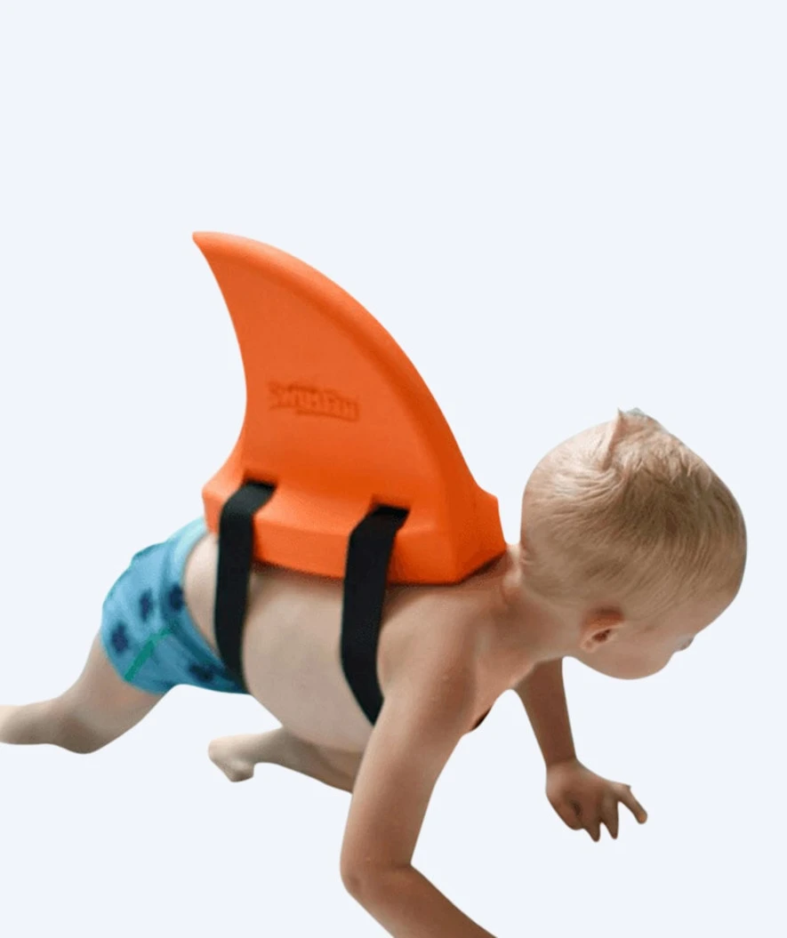 Denne SwimFin haifinnen i Oransje er et patentert og særdeles populært svømmeredskap for barn mellom 3 og 6 år (15-30 kg). Med denne på ryggen er barnet sikret oppdrift og samtidig en langt mer naturlig svømming og posisjon i vannet sammenlignet med andre svømmebelter og armringer.