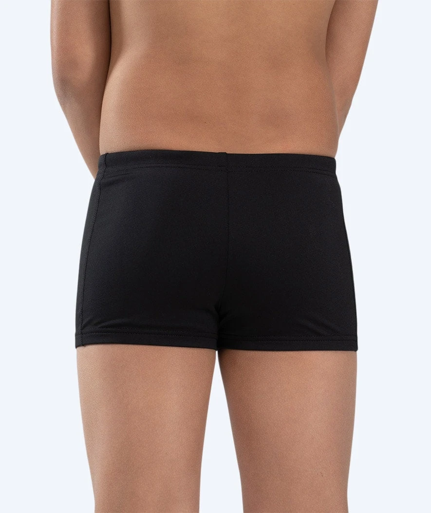 Disse korte badebuksene for gutter er produsert i vårt unike signatur materiale AquaFlex Eco som består av 100 % polyester (hvorav 55 % fra resirkulerte plastflasker) og er de eneste trunks badebuksene i bærekraftige materialer som også er ultra klorresistent (+500 timer) i vann.