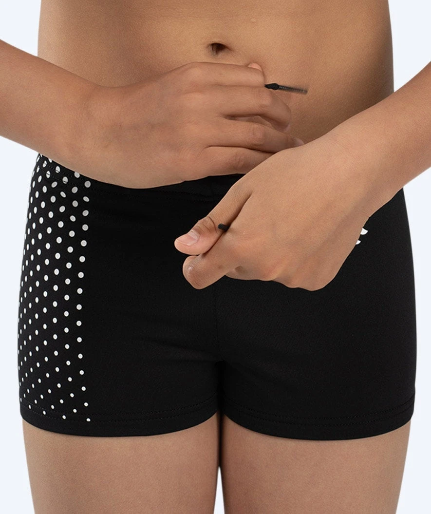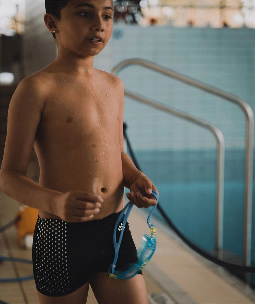 Designet er enkelt og stilig med en diskret hvit logo øverst i venstre hjørne og en sidelengde som går til øvre del av låret. Etter +90 tester på gutter i alle aldre har vi funnet den perfekte lengde hvor de verken blir for korte og upassende, men heller ikke så lange at de føles som en badeshorts. Du vil garantert oppleve den umiddelbare gleden som dette gir enhver som har prøvd det motsatte tidligere.