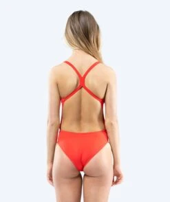 Freestyler Solid for damer i fargen Cherry Red er designet med et enkeltlags stoff, åpen rygg, høyt bensnitt, rene farger og en diskret hvit Watery-logo nederst på hoften. Totalt sett sørger den for en ekstremt sporty og feminin look, i tillegg til en slank silhuett.