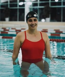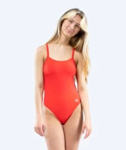 Freestyler Solid badedrakt for damer/jenter i alderen +13 år har raskt blitt vår klare toppselger og en favoritt blant svømmere uansett nivå. Badedrakten er designet med høyt bensnitt, tynne stropper, fri rygg og laget i vårt svært slitesterke og klorresistente materiale AquaFlex – optimalt for deg som bruker mange timer på banesvømming, er glad i være i svømmebassenget og/eller på stranden og ønsker å leve mer bærekraftig. Her i fargen Cherry Red.
