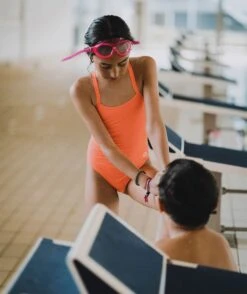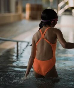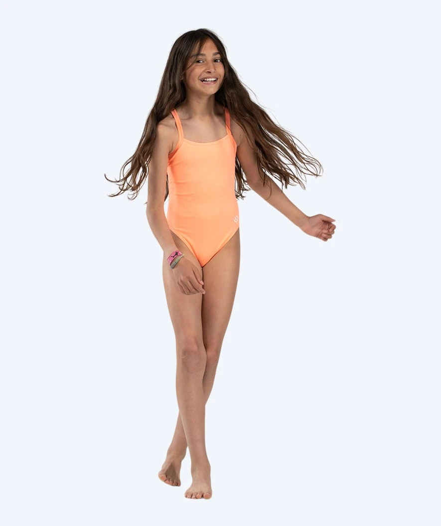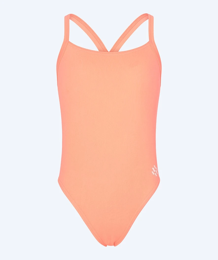 Freestyler Solid for jenter i fargen Coral er designet med et enkeltlags stoff, åpen rygg, høyt bensnitt, rene farger og en diskret hvit Watery-logo nederst på hoften. Totalt sett sørger den for en meget sporty og feminin look, i tillegg til en slank silhuett.