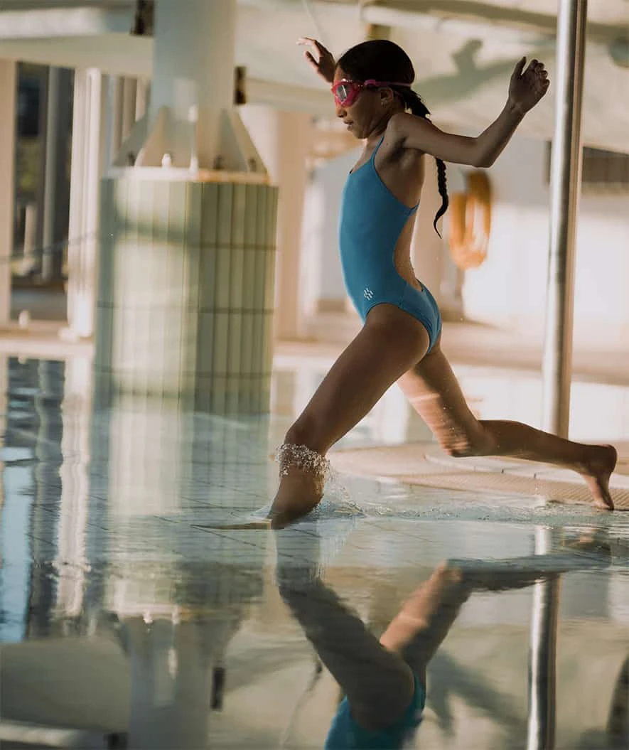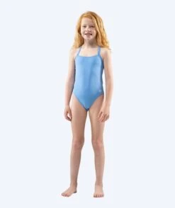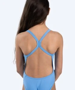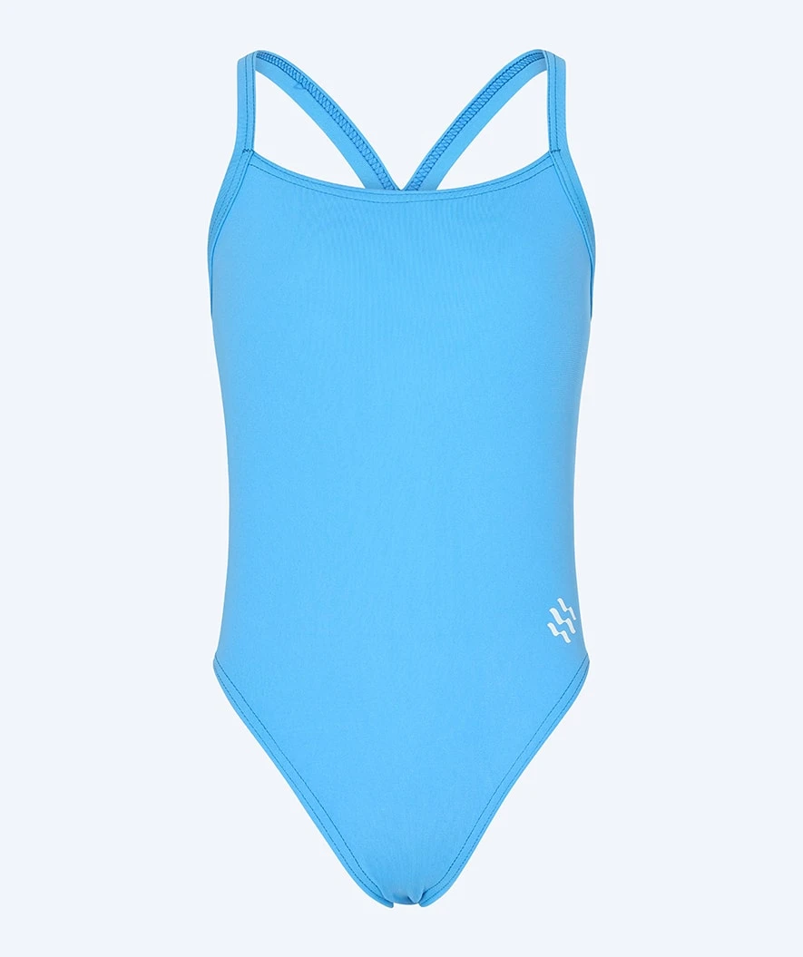 Freestyler Solid for jenter i fargen Electric Blue er designet med et enkeltlags stoff, åpen rygg, høyt bensnitt, rene farger og en diskret hvit Watery-logo nederst på hoften. Totalt sett sørger den for en meget sporty og feminin look, i tillegg til en slank silhuett.