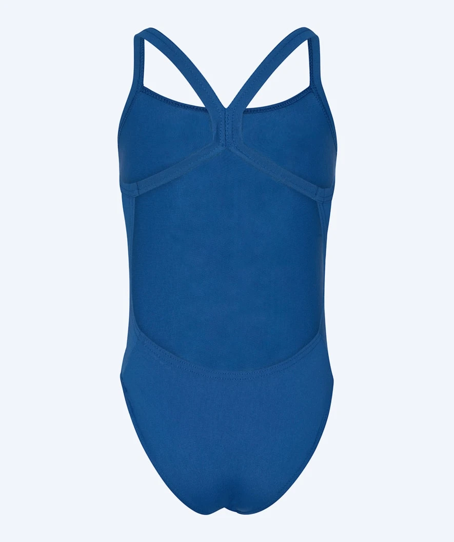 Freestyler Solid for jenter i fargen mørkeblå er designet med et enkeltlags stoff, åpen rygg, høyt bensnitt, rene farger og en diskret hvit Watery-logo nederst på hoften. Totalt sett sørger den for en meget sporty og feminin look, i tillegg til en slank silhuett.