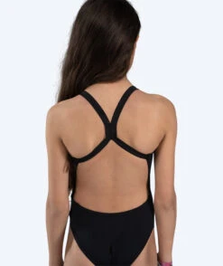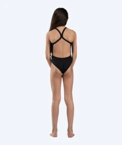 Freestyler Solid for jenter i fargen sort er designet med et enkeltlags stoff, åpen rygg, høyt bensnitt, rene farger og en diskret hvit Watery-logo nederst på hoften. Totalt sett sørger den for en meget sporty og feminin look, i tillegg til en slank silhuett.