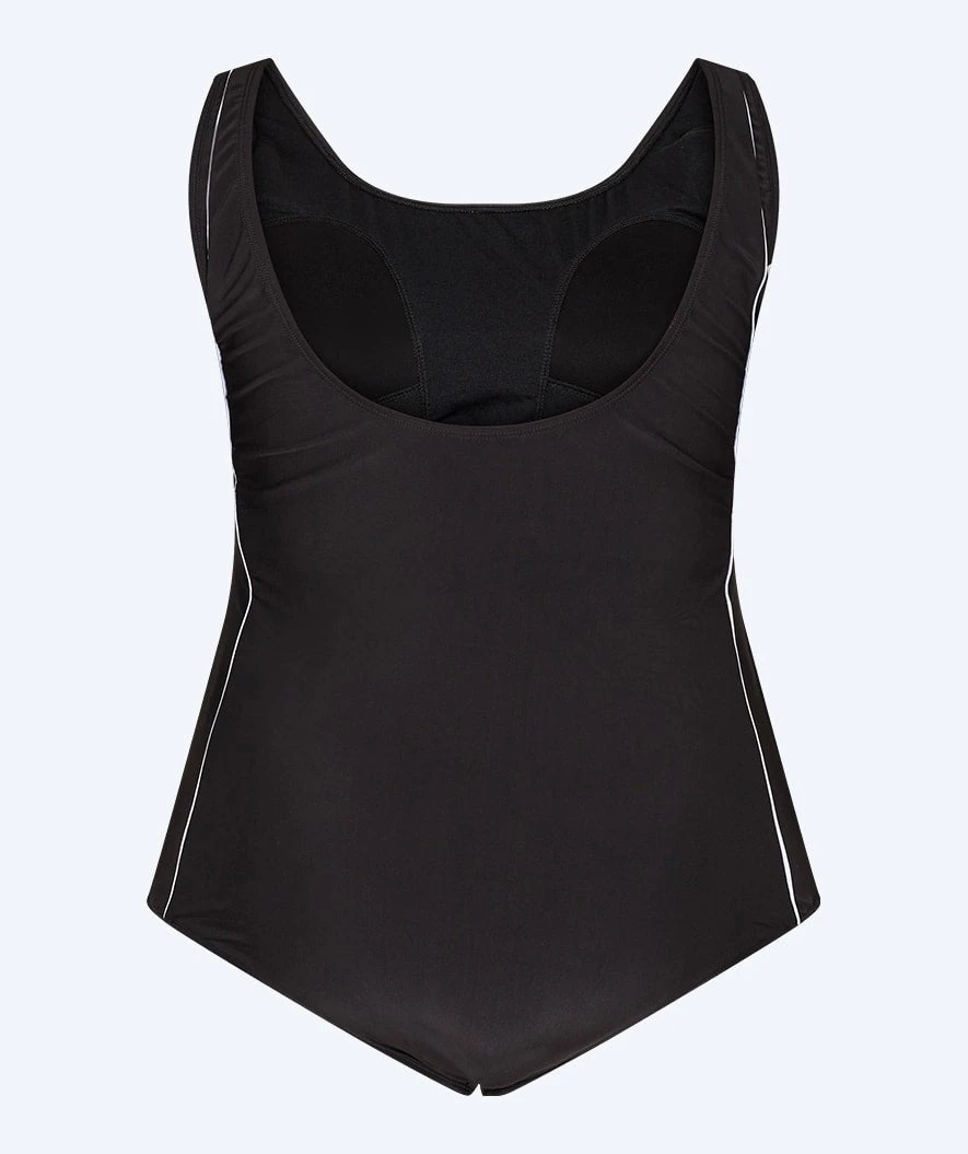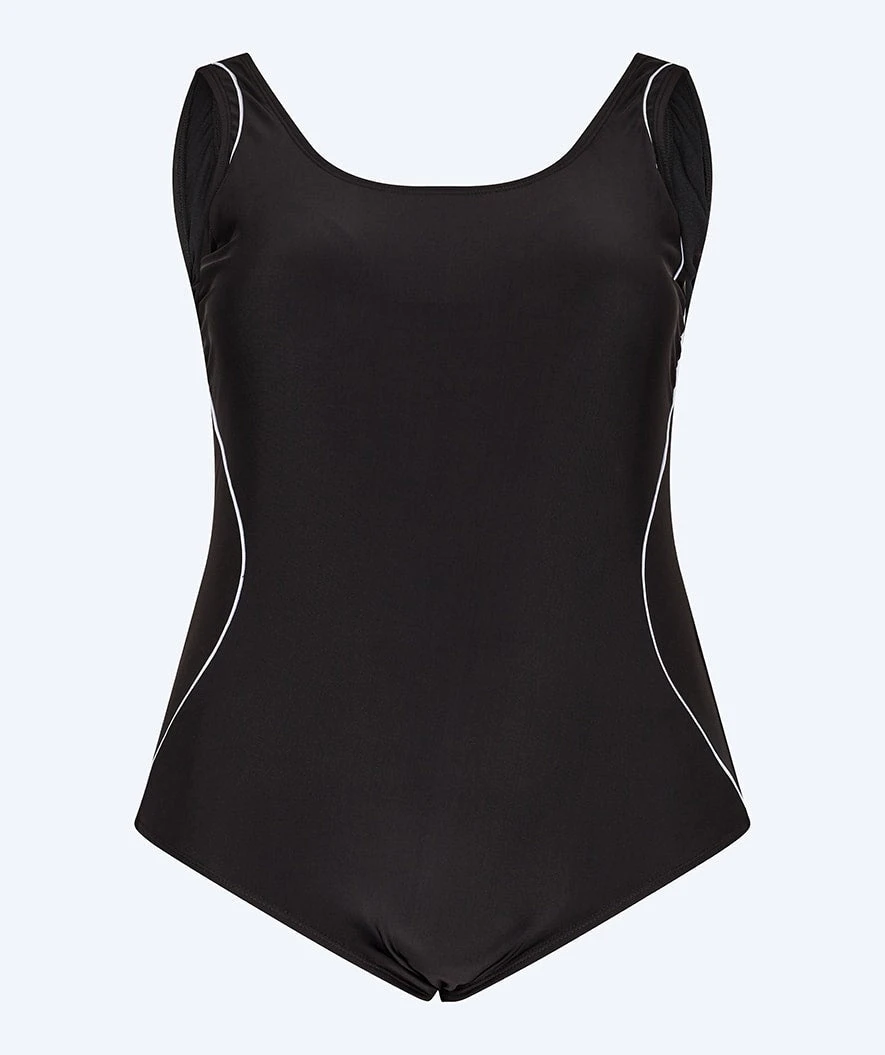 Badedrakten kommer her i sort, men er også tilgjengelig i Arvin blå.