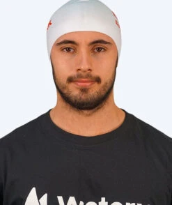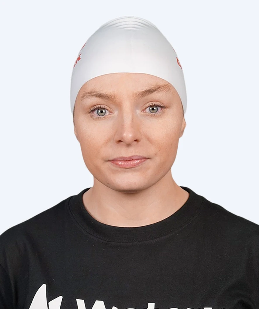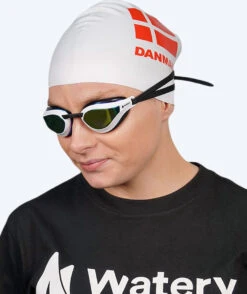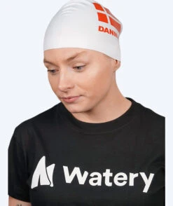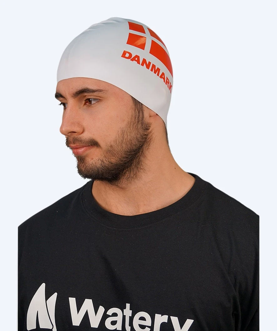 Vår Watery badehette med Dannebrog-design på sidene er uten tvil den mest populære i Danmark.