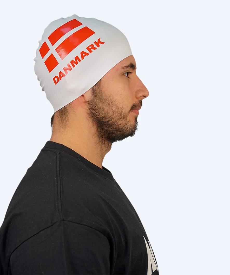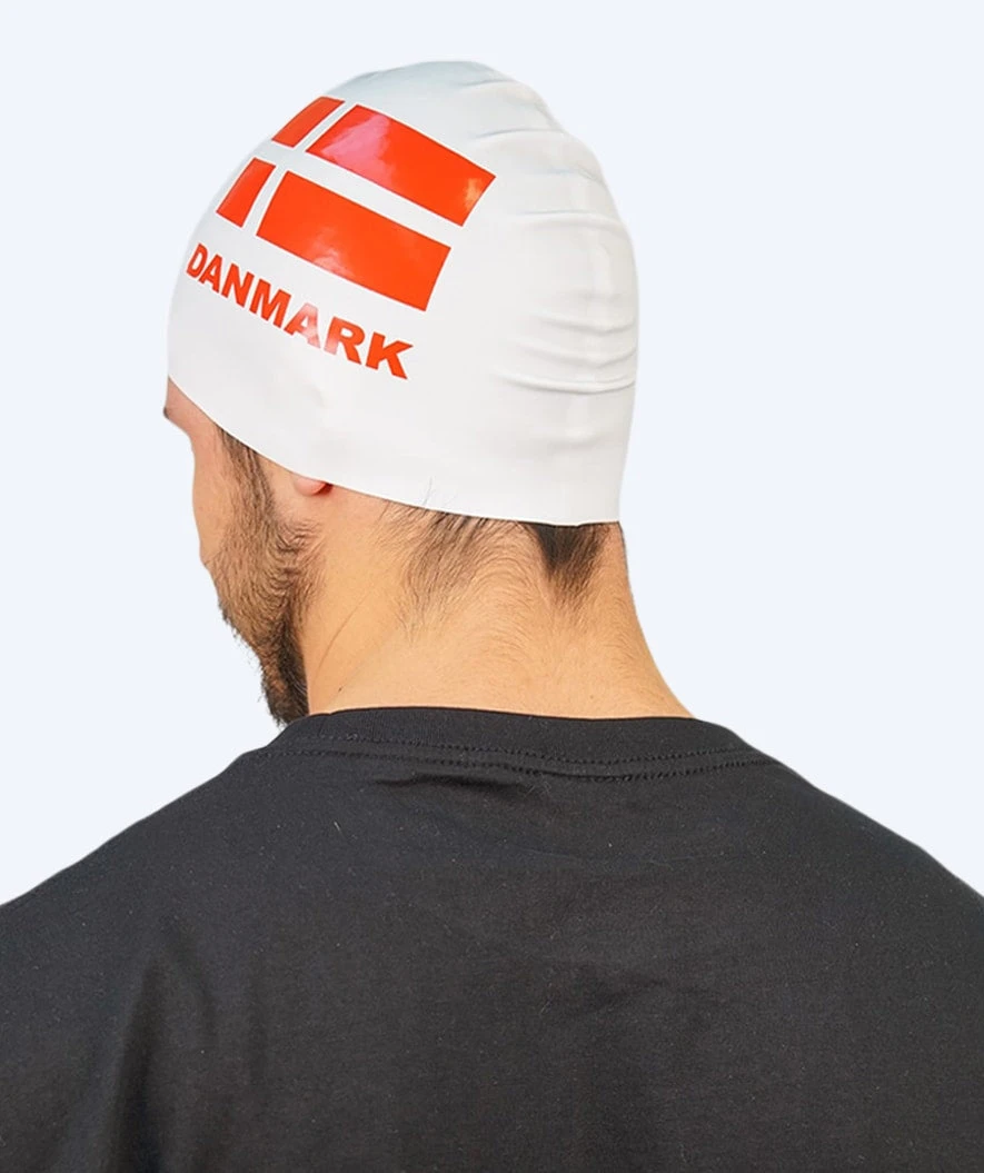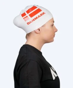 Denne modellen er designet med Dannebrog og teksten Danmark på begge sider. Selve badehetten er hvit, men dannebrog og teksten har den klassiske rødfargen som vi kjenner fra det danske flagget.