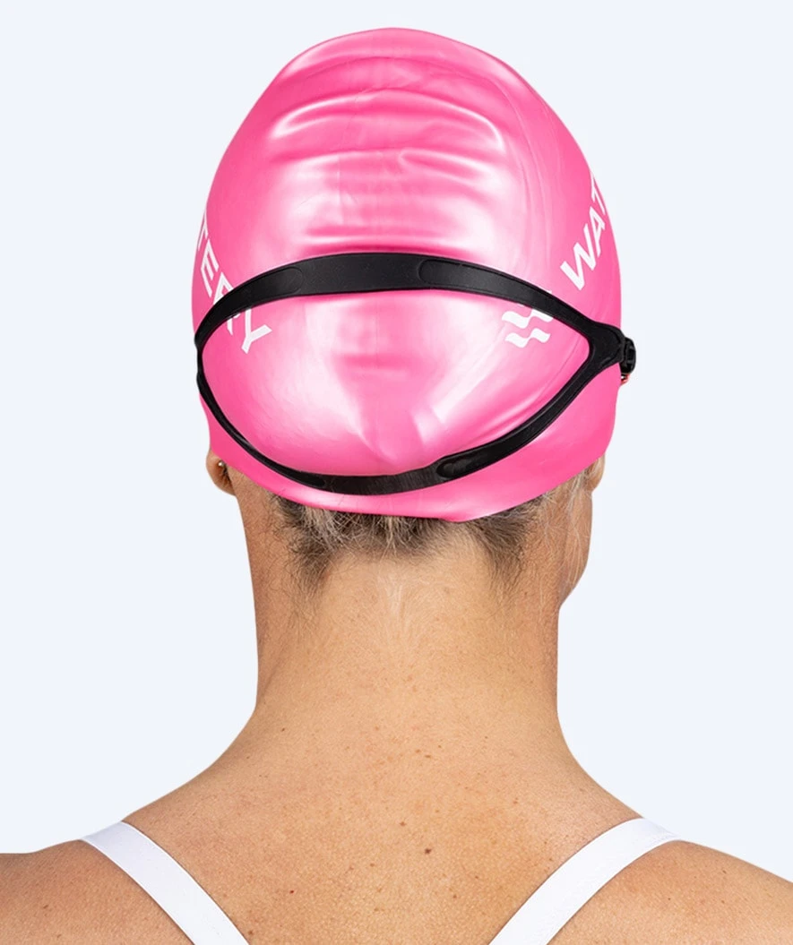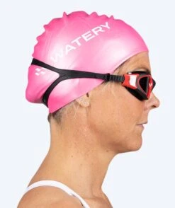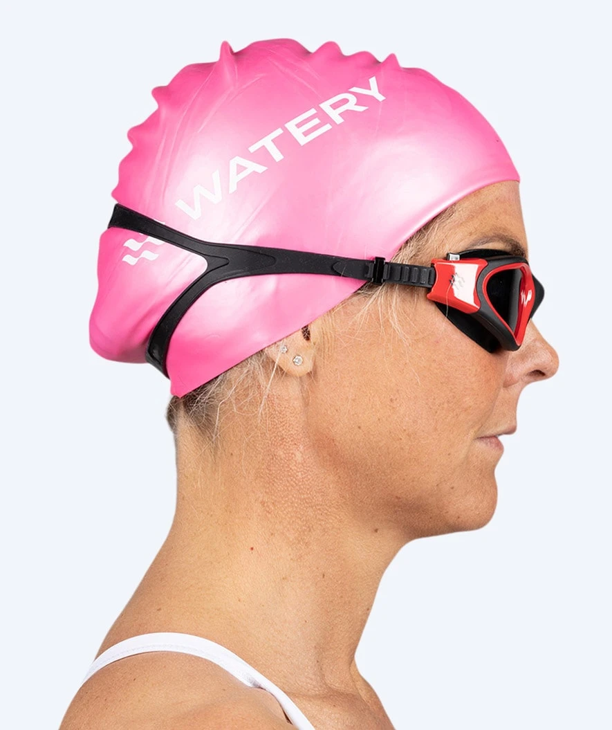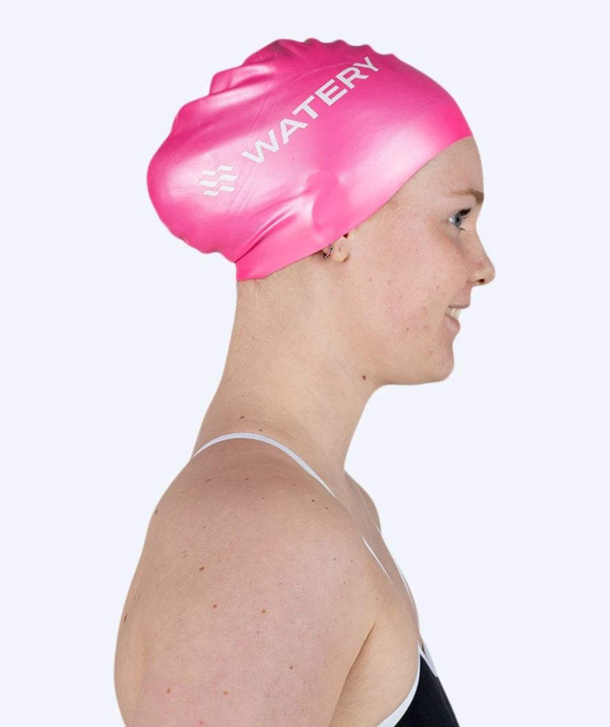 Vår Watery Signature Long-hair Cap har et større design for deg med langt/stort hår, hvor det er gjort ekstra plass til hårknuten og materialet er gjort mer elastisk. Badehetten er imidlertid fortsatt laget av 100% spesial-semsket silikon som sørger for en matt overflate, men i tillegg er det også lagt inn non-slip mønstre på innsiden av badehetten, slik at den sitter tett inntil hodet og du unngår vått hår mens du er i vannet.