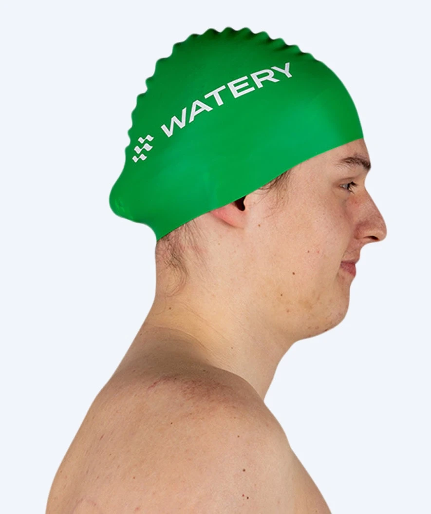 Watery Signature badehette er one-size og er egnet for personer fra 8 år og oppover – uansett langt eller kort hår. Dette skyldes det spesielle designet av elastisk silikon som automatisk tilpasser seg og former seg etter hode og hår etter 3-4 gangers bruk.