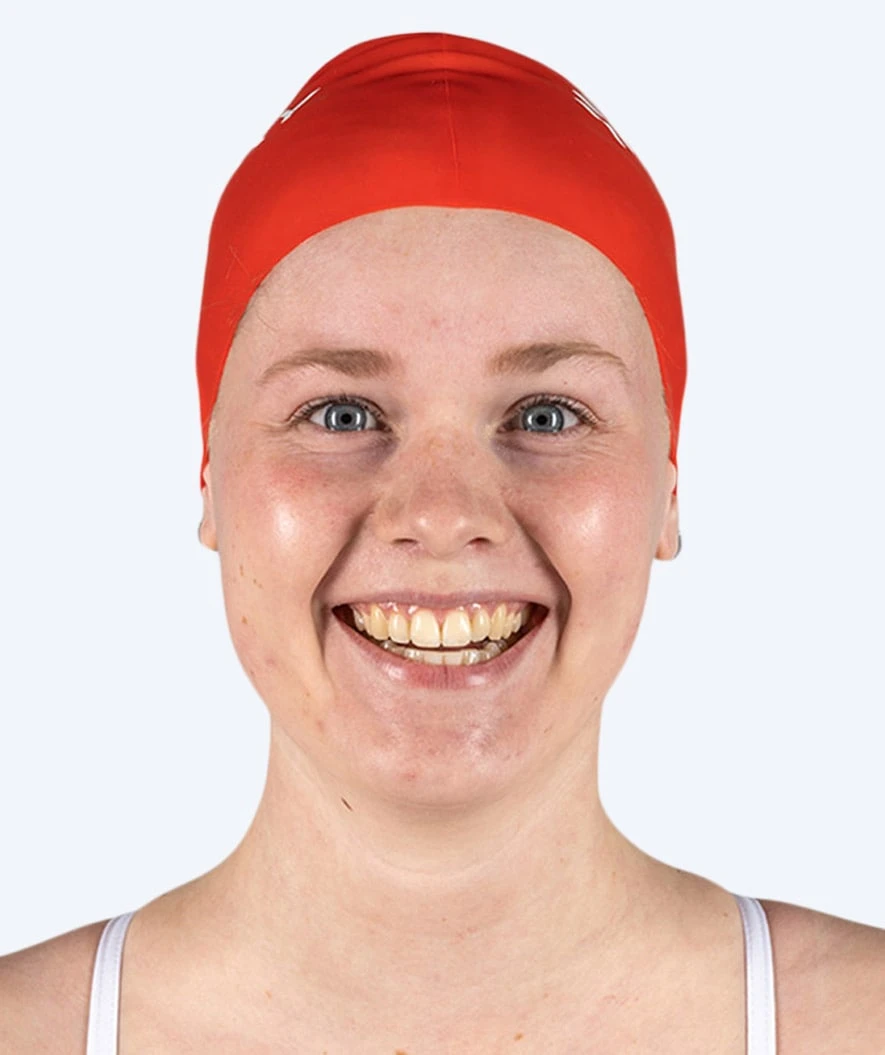 Tilbakemeldingene i løpet av årene har vært at den gode passformen og det fleksible semskede silikonmaterialet gjør at du nesten glemmer at du har på badehetten, noe som i bunn og grunn er det viktigste for en badehette. Badehetten er laget slik at den optimalt sett skal sitte litt over øreåpningene på sidene, slik at du fortsatt kan høre alt rundt deg og dermed unngå at den føles ubehagelig å svømme med.