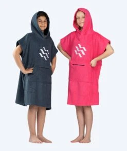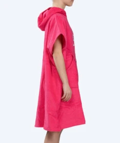 Sørg for at din datter/sønn på 6-15 år får varmen i seg straks etter svømmeturen/badet, og bytt enkelt og diskret til/fra badetøy med vår poncho i bomull for junior. Ponchoen er laget av særdeles myk 100% langhåret bomull og kan sammen med svært god evne til å absorbere vann, skilte med flere herlige fordeler som inkluderer vanntett kengurulomme foran for mobiltelefon/lommebok, oversized hette for beskyttelse mot regn og vind, store ermehull og åpning nederst for enkelt klesbytte under ponchoen. Ponchoen passer for jenter og gutter mellom 6 og 15 år. Her i fargen rosa.
