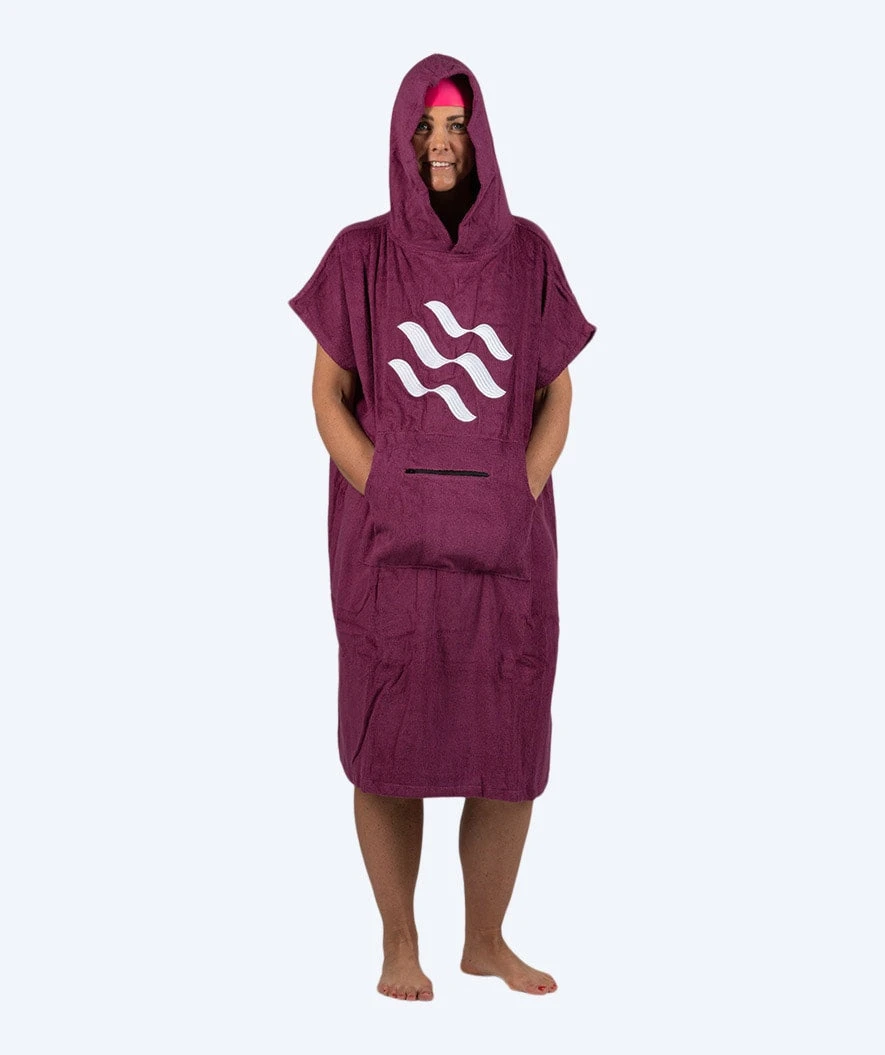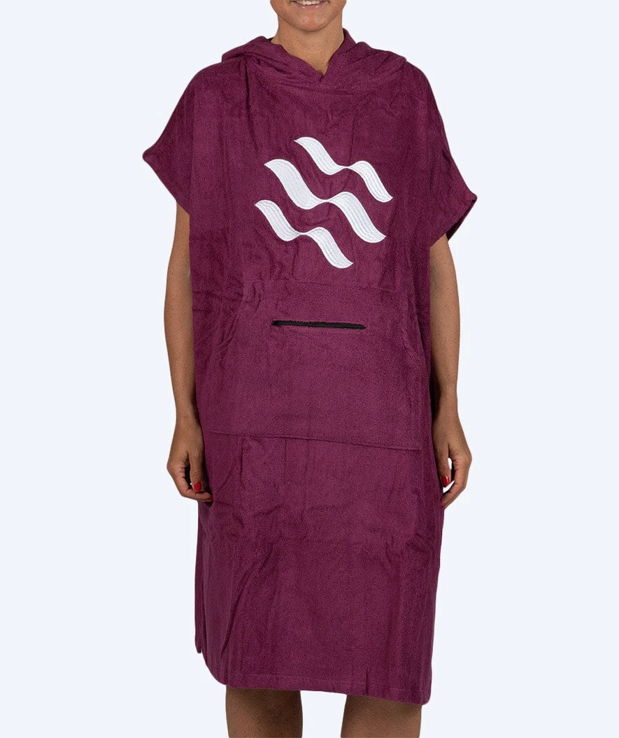 Sørg for å få varmen i deg straks etter svømmeturen/badet, og bytt enkelt og diskret til/fra badetøy med vår poncho i bomull for voksne. Ponchoen er laget av særdeles myk 100% langhåret bomull og kan sammen med svært god evne til å absorbere vann, skilte med flere herlige fordeler som inkluderer vanntett kengurulomme foran for mobiltelefon/lommebok, oversized hette for beskyttelse mot regn og vind, store ermehull og åpning nederst for enkelt klesbytte under ponchoen. Ponchoen passer for menn og damer, samt barn fra 15 år og oppover. Her i fargen lilla.