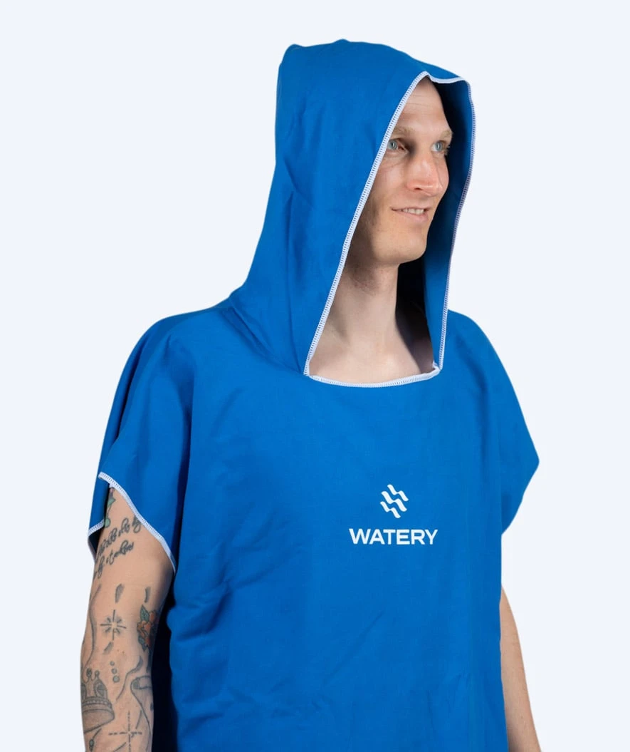 Watery Mikrofiber poncho, her i fargen Royal Blue, er også tilgjengelig i svart, mørkeblå, rosa og lilla.