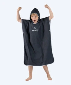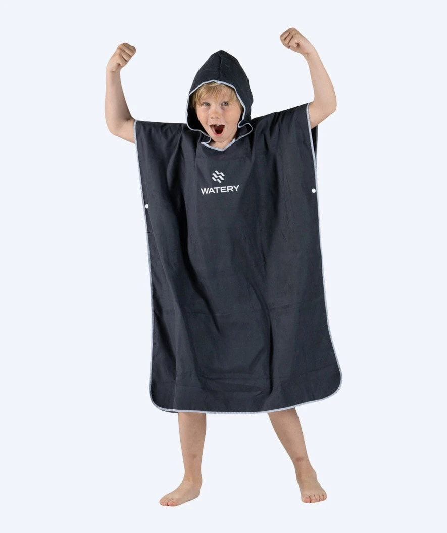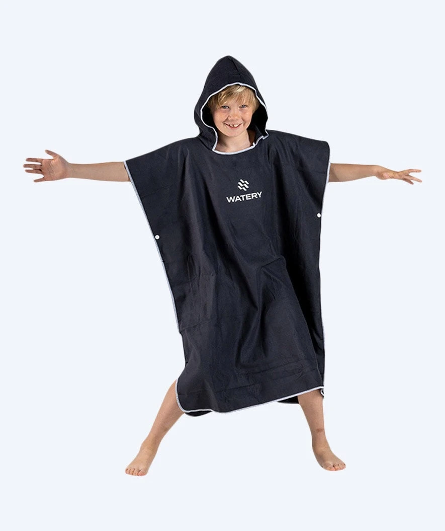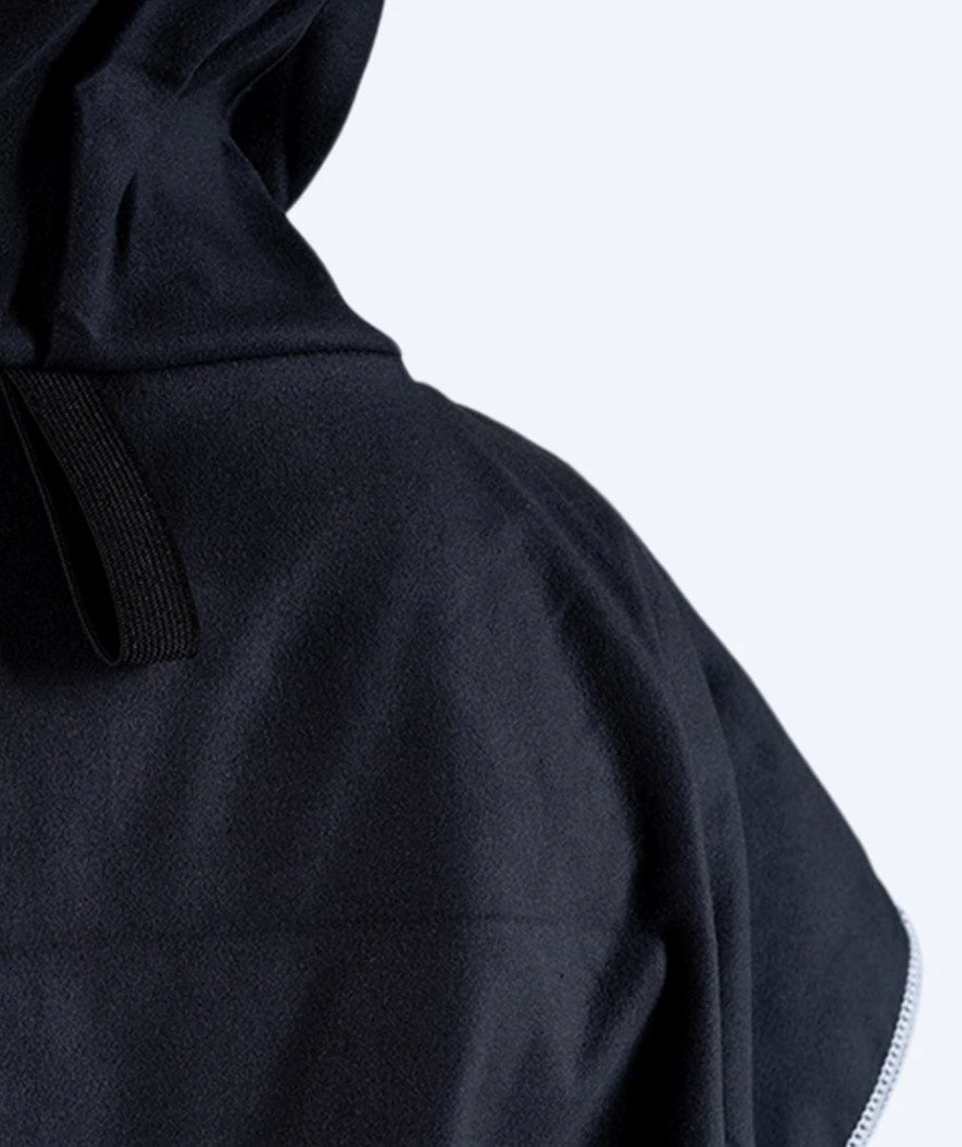 Watery Mikrofiber poncho, her i fargen Sort, er også tilgjengelig i mørkeblå, rosa, lyseblå og lilla.