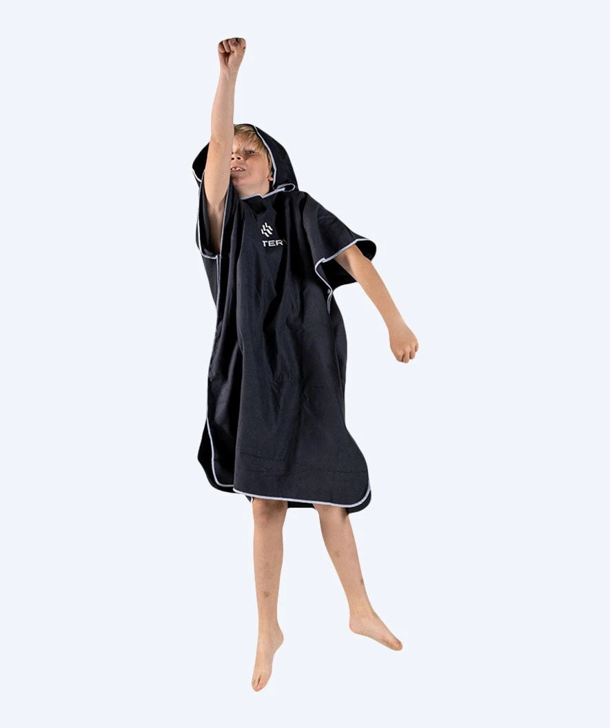 Med denne ponchoen får barnet ditt hjelp med å skifte til/fra badetøy og holde varmen etter en tur i vannet.