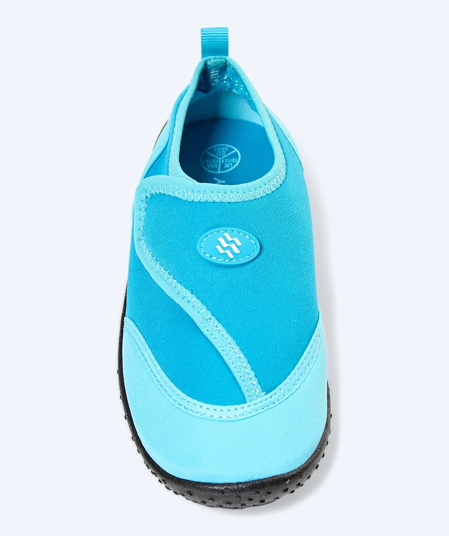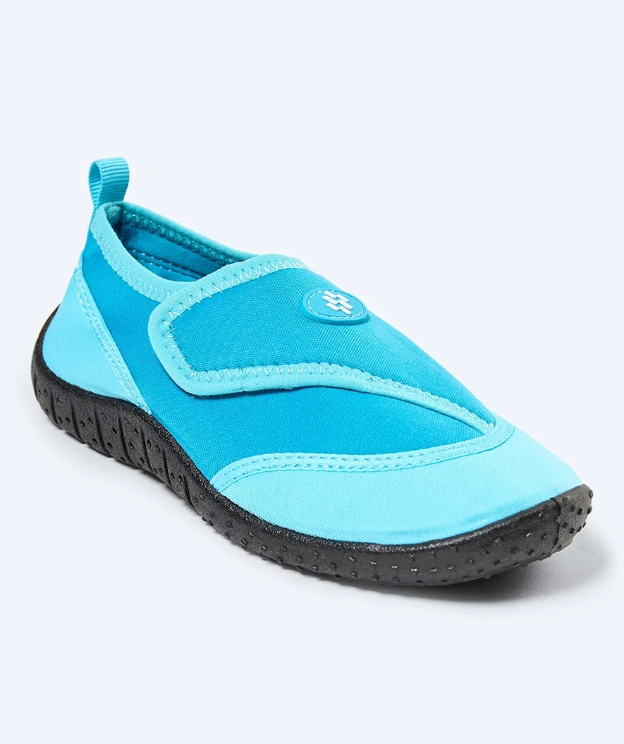 Barn elsker å være på stranden, og derfor bør en også sørge for at det blir en god opplevelse for barnet. Det kan enkelte ganger bli en utfordring hvis det er mange steiner, skarpe gjenstander eller andre ting som er ubehagelige å tråkke på. Med våre letteste badesko, Watery Alwyn for barn, blir imidlertid det hele lett som en lek. Med sklisikre såler, en enkel borrelåslukking over vristen, samlet lukket konstruksjon og fleksibel neopren, har Alwyn allerede blitt vår favoritt blant badesko til barn.