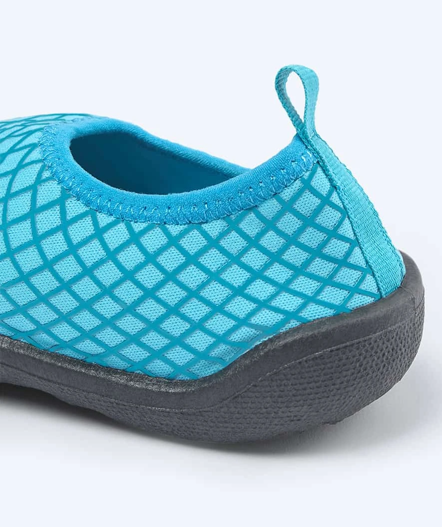 - Skoene er sklisikre og med water-grip funksjon, så du unngår å gli på glatte steiner eller bassengkanten, men står i stedet 100 % trygt og godt.
