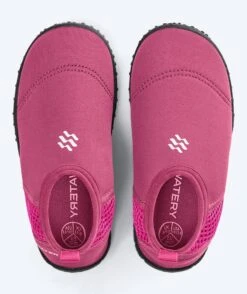 Watery High Catfish badesko til barn finnes i 4 friske farger, her i fargen rosa. Den finnes også i fargene grå, sort og mørkeblå. Det er en meget lett badesko, som barnet nærmest ikke merker at han/hun har på foten. Med denne badeskoen kan barnet ditt løpe fritt omkring, utforske sin nysgjerrighet og ha en skjønn dag ved stranden, ved bassenget, i svømmehallen eller hvor enn barnet ditt ellers ferdes.