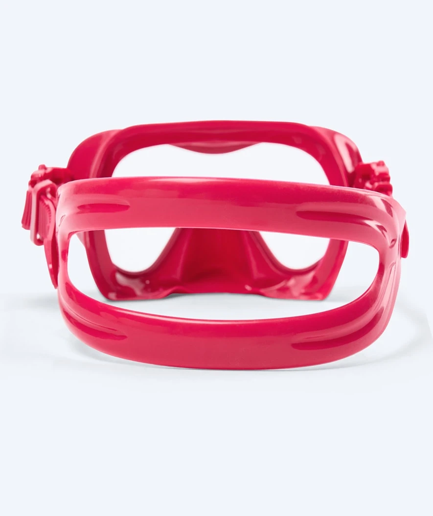 - Dykkemaskens glass er herdet, og er dermed meget holdbart i forhold til andre dykkemasker.