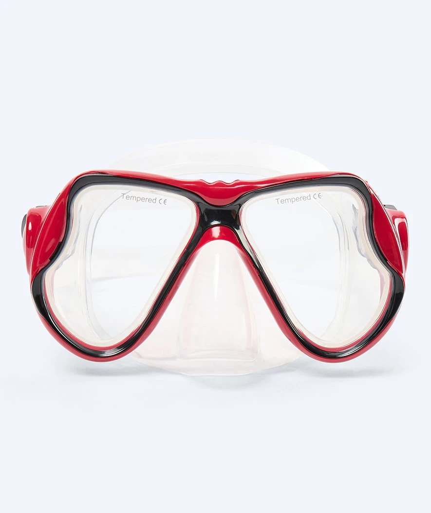 - Dykkemaskens glass er herdet og laget av et bruddsikkert PC-materiale, noe som garanterer at linsene holder lenge og at du unngår skrammer og riper. Masken er derfor super motstandsdyktig og kan trygt benyttes i havet, bassenget og svømmehallen – uten at du trenger å være redd for at den går i stykker.