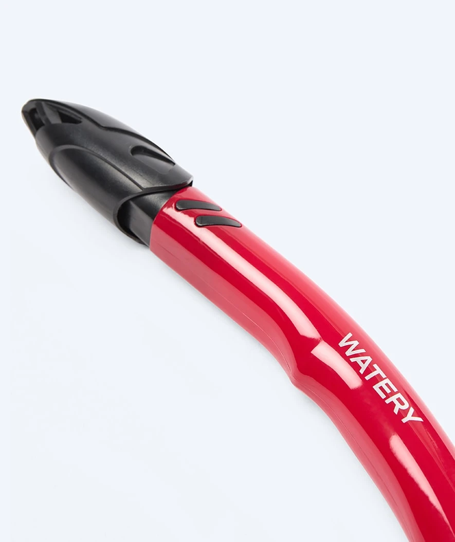 - Et semi-dry snorkel rør, som motvirker at vannsprut kommer ned i munnen, men altså ikke hvis man dykker under overflaten.