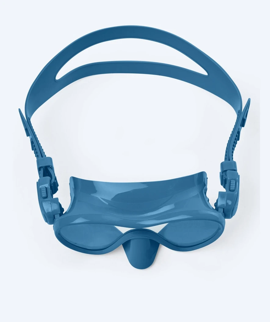 Fargene, som Watery Cliff dykkemasken fås i, blir ikke mye mer nordiske og stilfulle. Her i en flott mørkeblå farge, men den fås også i grå, lyseblå, rød, grønn, mørkerød, lilla og rosa.