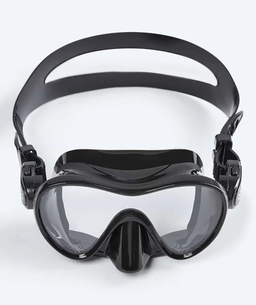 - Dykkemaskens glass er herdet, og er dermed meget holdbart i forhold til andre dykkemasker.