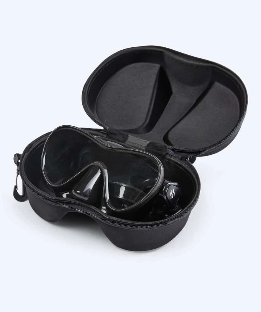 - Til hver dykkemaske følger det med et sort etui, som beskytter masken når den f.eks. ligger i svømmebagen.