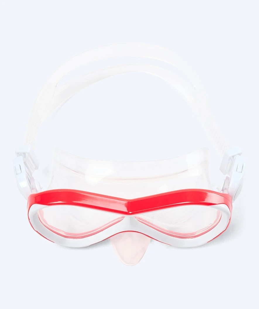 Fargene, som Watery Triton dykkemasken fås i, blir ikke mye mer nordiske og stilfulle. Her i en flott rød farge, men den får også i rosa, blå, gul og lyseblå.