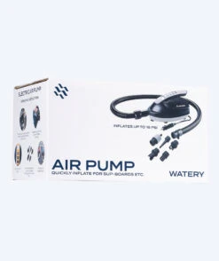 Det kan være krevende, spesielt fysisk, å fylle opp paddleboardet ditt med luft via en manuell pumpe. Derfor benytter mange en elektrisk pumpe, slik at du ikke blir svett i pannen og kan gjøre deg klar i mellomtiden. Denne pumpen passer perfekt ti vårt Watery Global paddleboard.