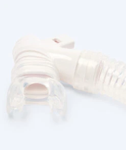 - Silikon-munnstykket er laget av høykvalitets silikon med et behagelig bitt tilpasset spesielt for barn mellom 6 og 14 år. Det kan også fjernes helt og enten byttes ut eller bare rengjøres og deretter settes på igjen. Til sammen sikrer dette at samme snorkel kan brukes i flere år – uten at du må kjøpe ny. Munnstykket er selvfølgelig matgodkjent.
