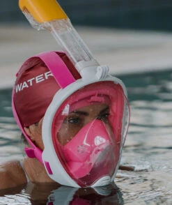 Med Watery Full Face masken er du utstyrt med en dykkermaske som kombinerer snorkel og maske i én integrert løsning. Vi har fokusert på at masken skal være behagelig å ha på, og nettopp derfor dekker den hele ansiktet – samtidig som den er tett.