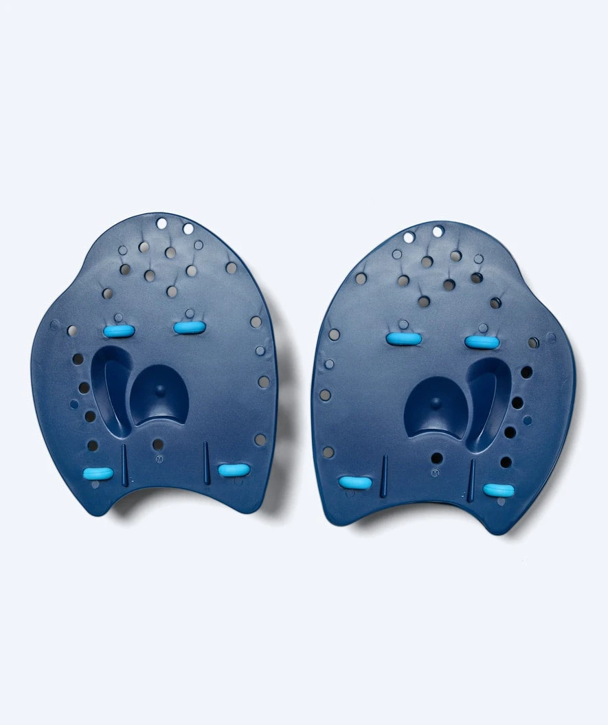 Watery Orwin hand paddles har et kult design i mørkeblå og lyseblå farger og er tilgjengelig i én størrelse – 20,32 cm lang og 17,78 cm bred. De passer for barn fra 14 år og oppover, samt voksne.