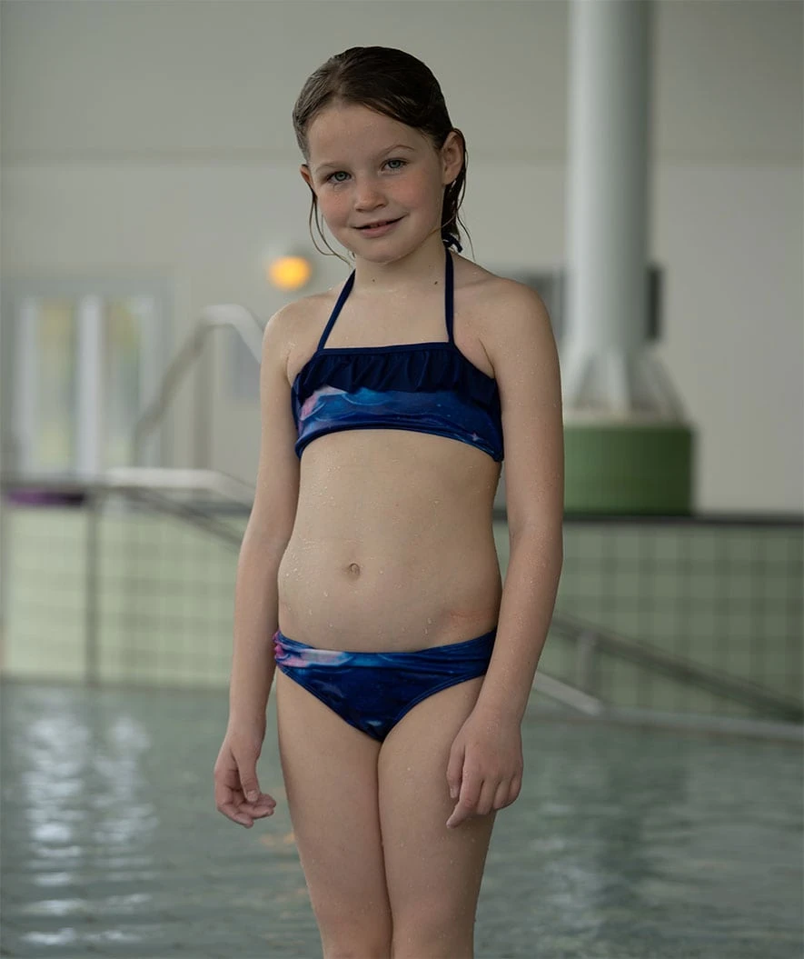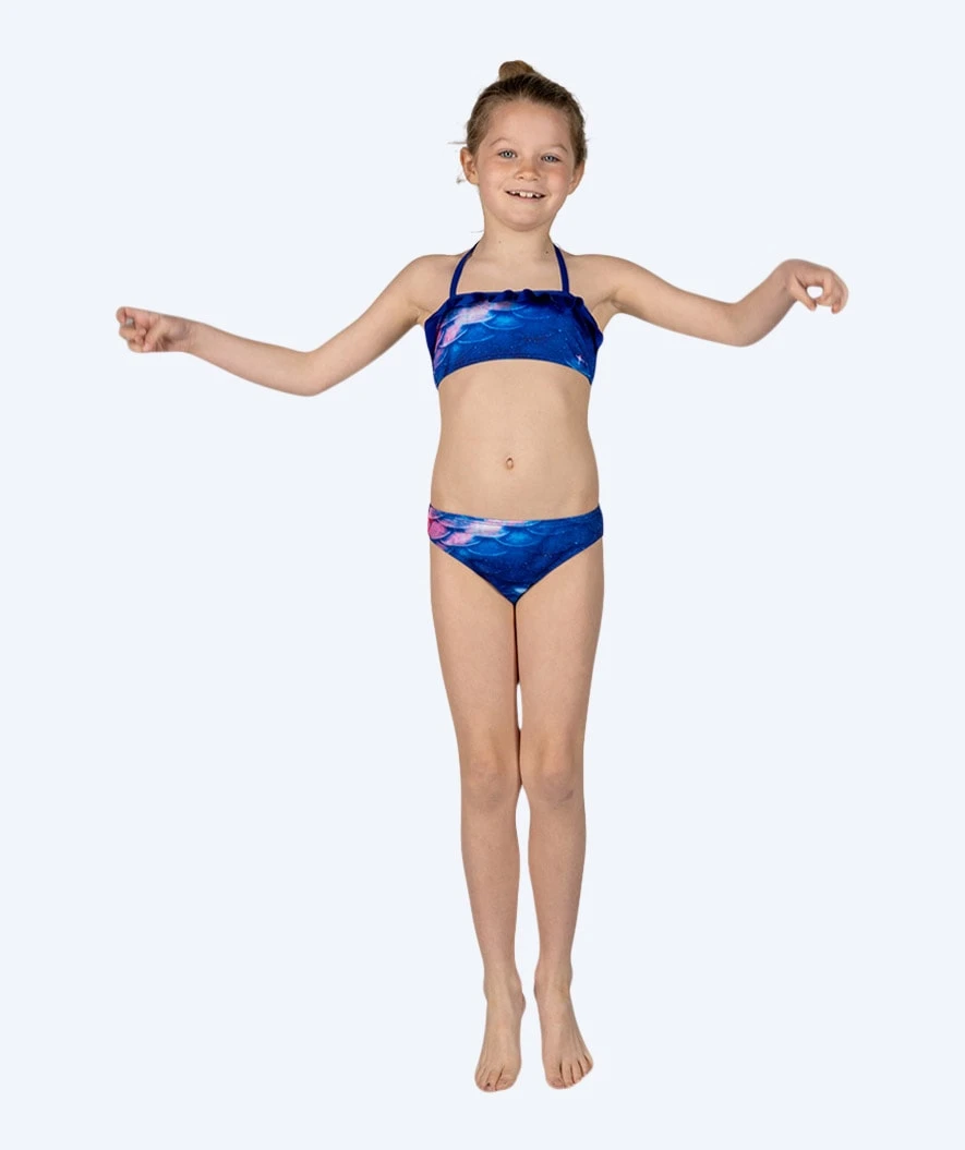 Milky Way-settet med topp og underdel kan fint brukes alene som bikinisett. Men hvis barnet ditt ønsker å gå all-in og bli en ekte havfrue, kan du finne matchende design i havfruehale her, samt tilhørende monofinne her.