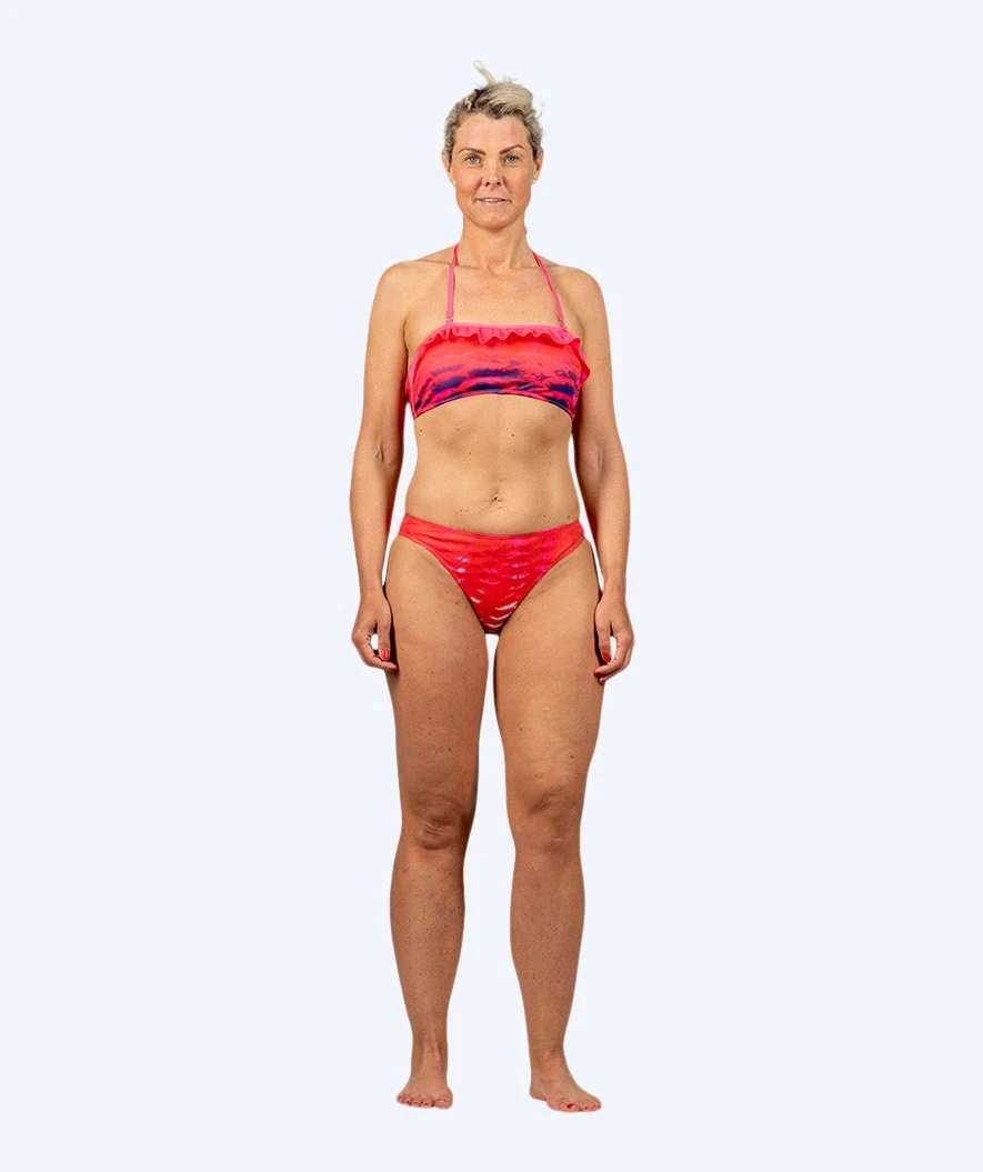Sunrise bikinisett i nydelige røde nyanser inkluderer både topp og en underdel, og vil få enhver kvinne til å føle seg vakker. Settet er en del av vårt Sunrise havfruehale-sett, men kan også fint brukes alene, som bikinisett.